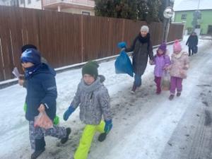 Děti ze školy si zpříjemnily dopoledne obchůzkou po Topolné.
