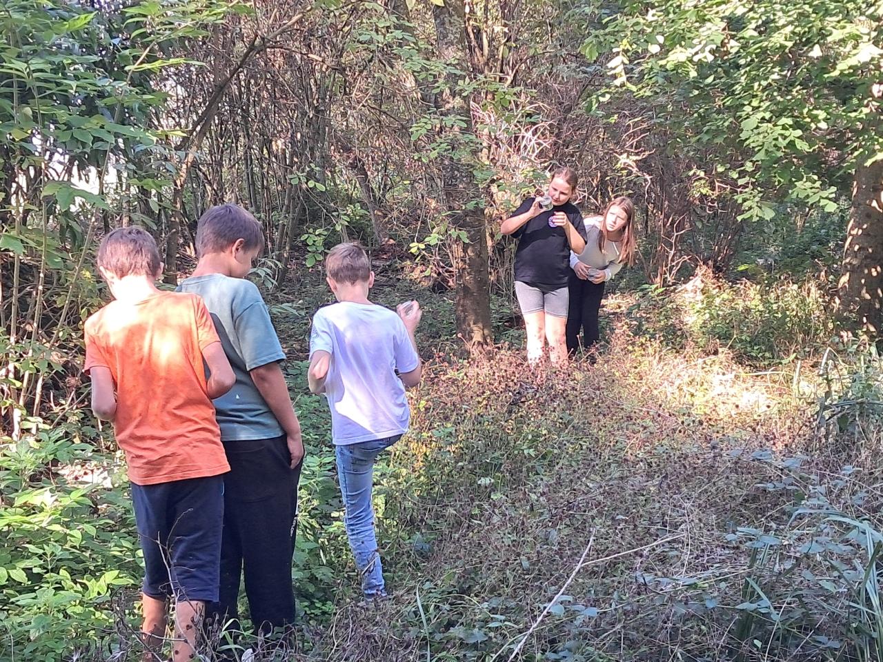 Páťáci sledovali drobné živočichy v nádherném prostředí topolského mokřadu.